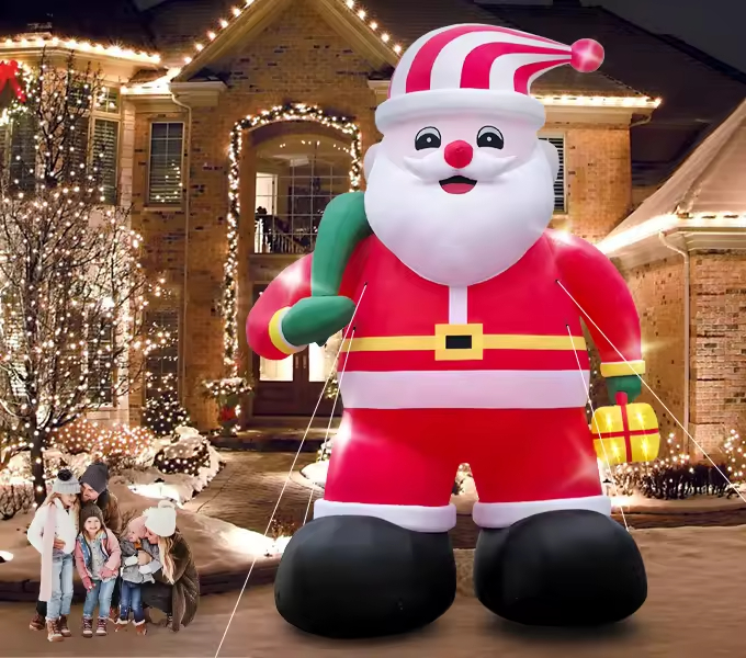 At InflateToy.com, we specialize in high-quality holiday inflatables designed to make your Christmas display unforgettable. This Giant Inflatable Santa Claus with LED Lights is the perfect centerpiece for your outdoor holiday décor—bright, durevole, and guaranteed to attract attention from family, guests, and passersby.